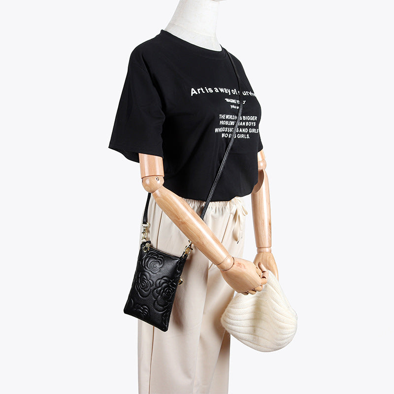 Women's First Layer Cowhide Rose Genuine Leather Phone Bags