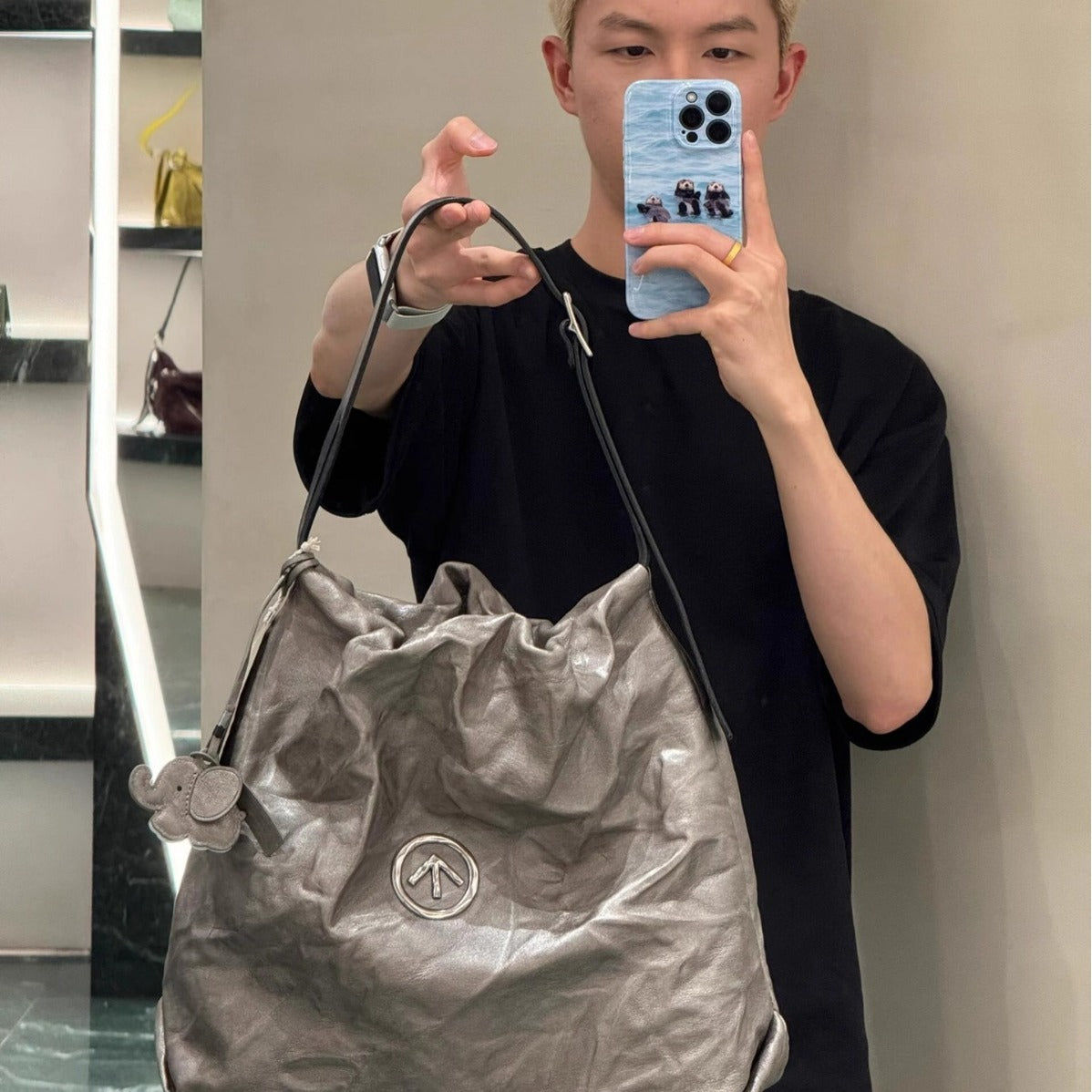 Women's Garbage Genuine Leather Pleated Medium Size Bags