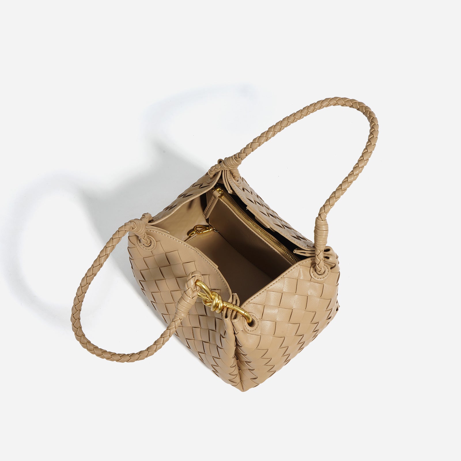 Women's Genuine Cattlehide Leather Surface Woven Retro Bucket Bags