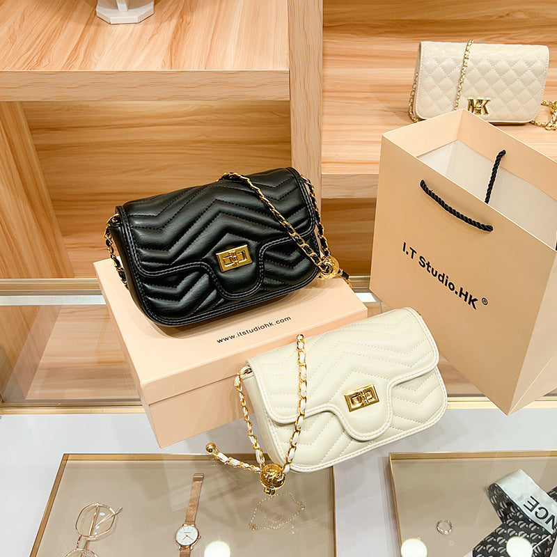 Women's Genuine Leather Golden Balls Rhombus Chain Shoulder Bags