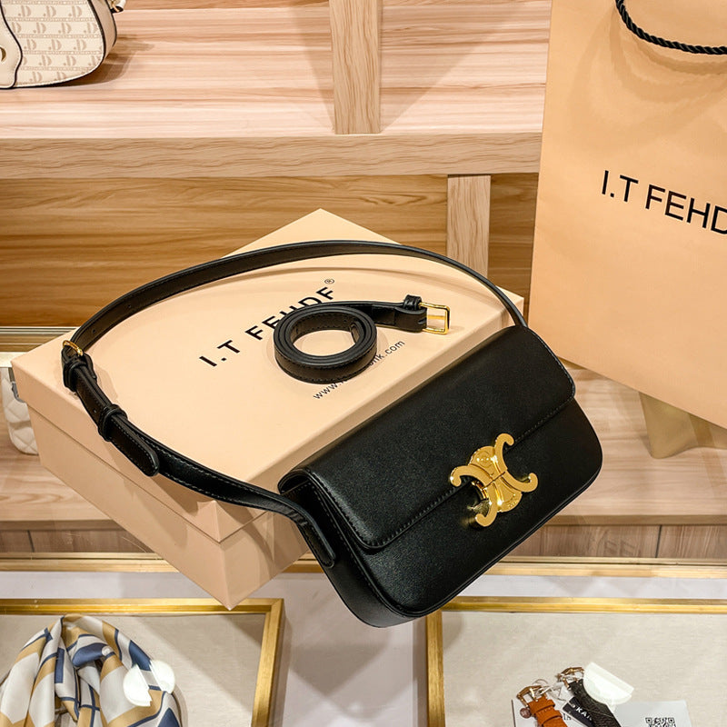Women's Genuine Leather Underarm Pouch Baguette Same Small Square Bags