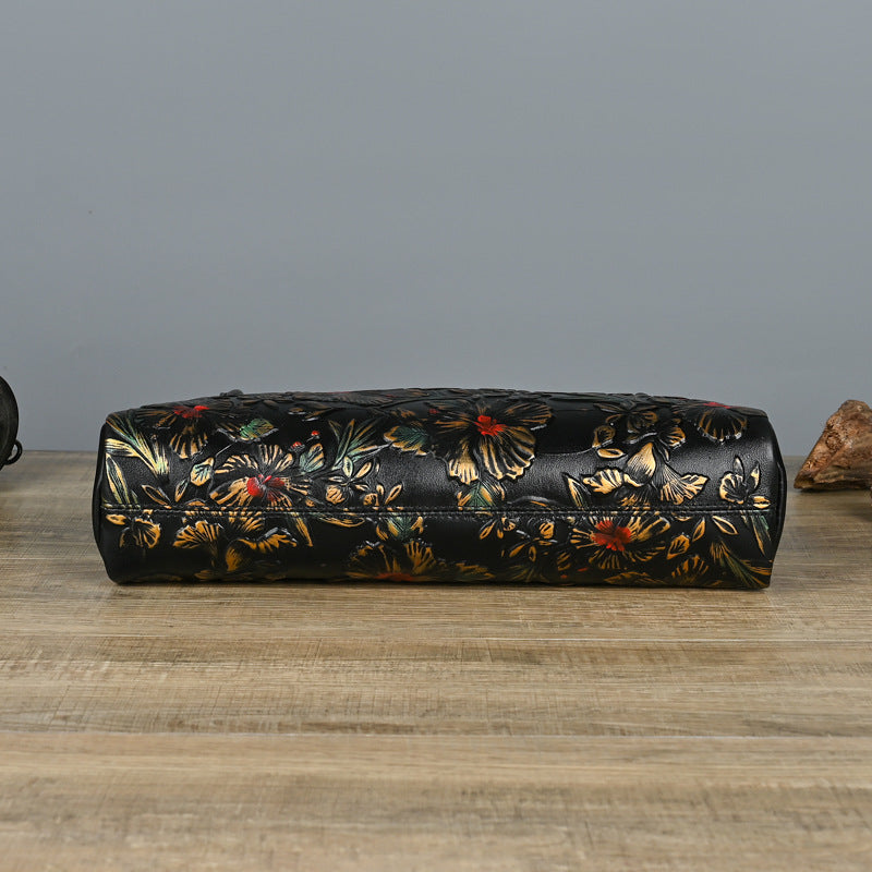 Women's Hand-rub Color Flower For Mom Elders Shoulder Bags