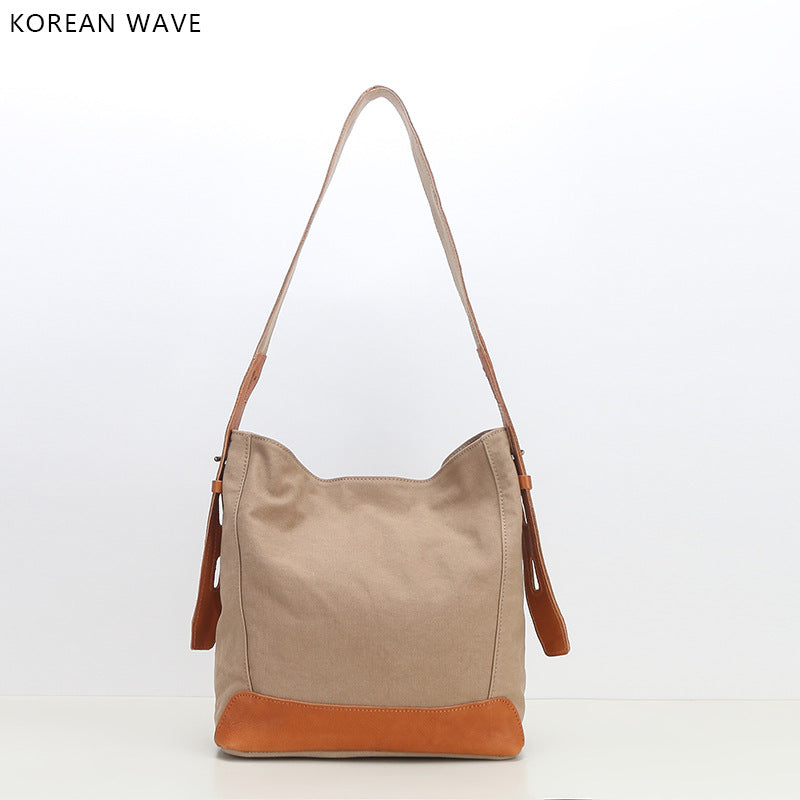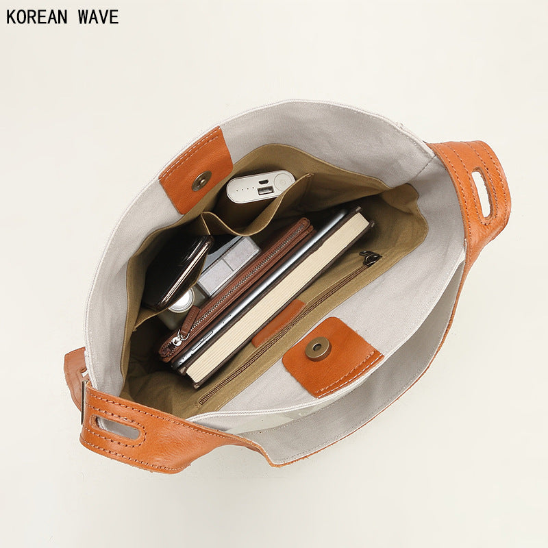 Women's Large Capacity Versatile Contrast Color Genuine Shoulder Bags