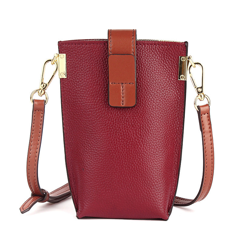 Women's Layer Cowhide Simple Cell Contrast Color Phone Bags
