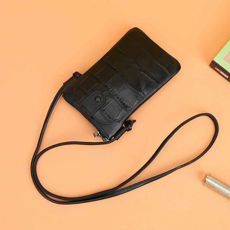 Women's Layer Cowhide Stone Pattern Versatile Vertical One Phone Bags