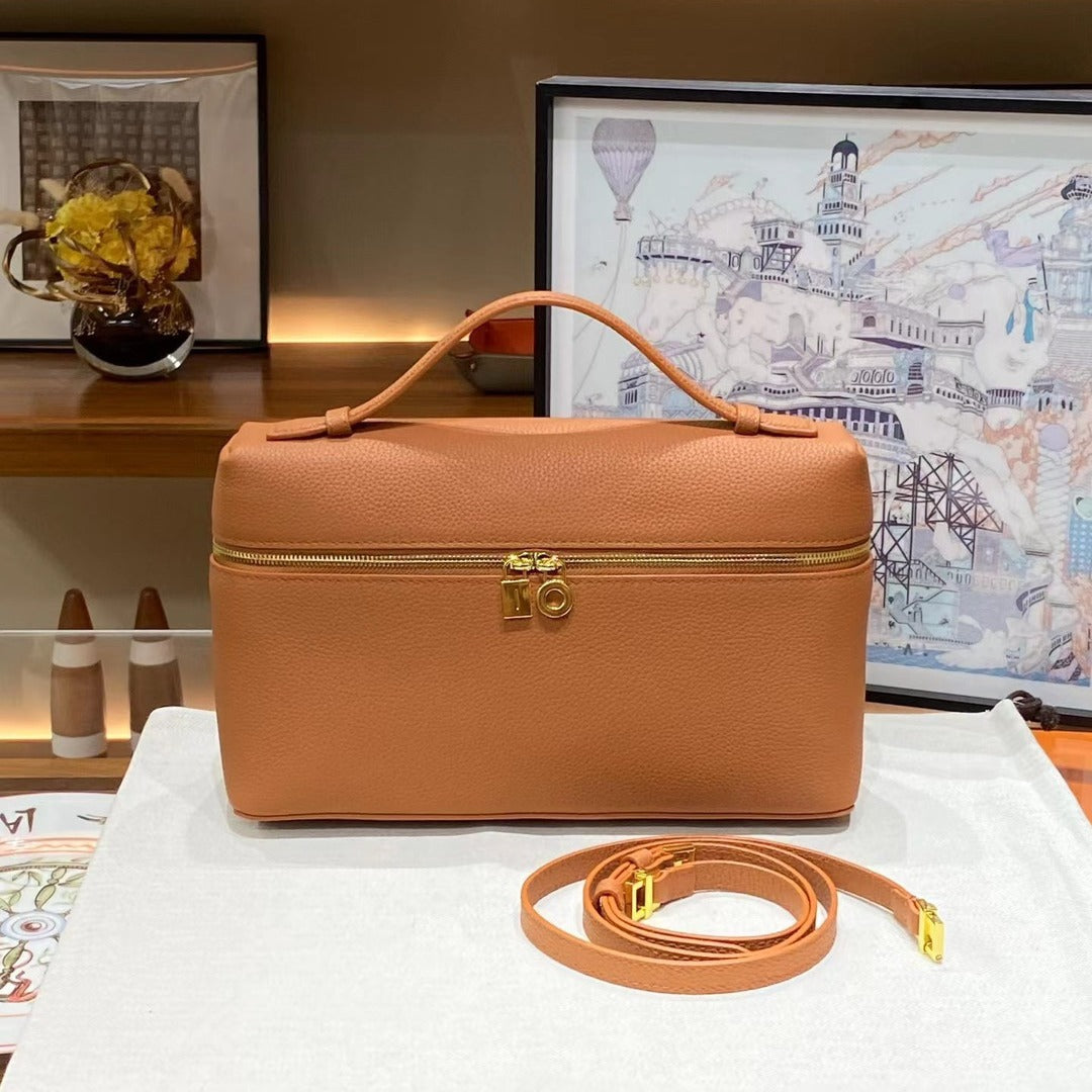Women's Leather Lunch Box Lychee Pattern Cowhide Handbags