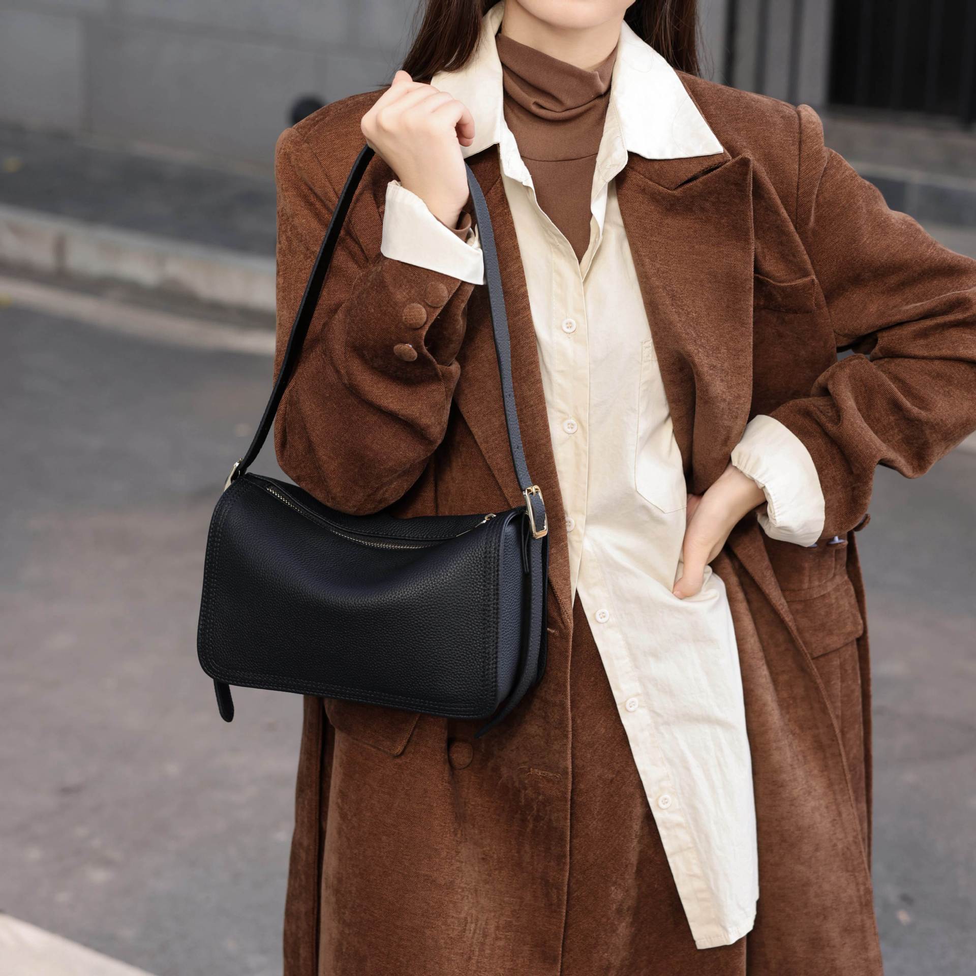 Women's Lychee Pattern First Layer Cowhide French Genuine Bags