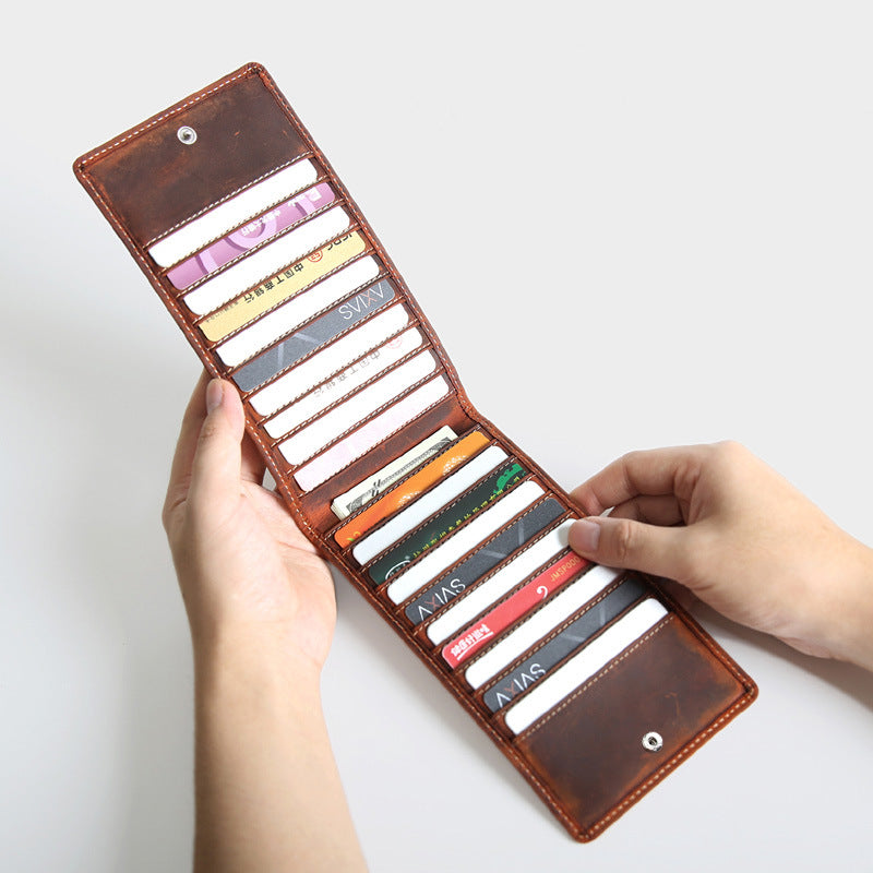 Women's & Men's First Layer Cowhide Multiple Slots Vintage Real Leather Long Card Holder