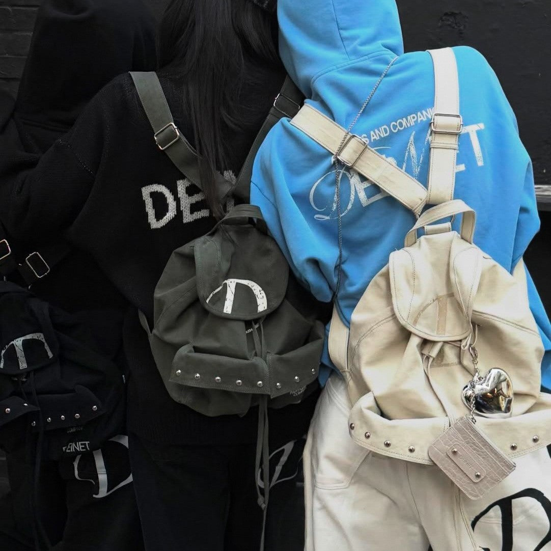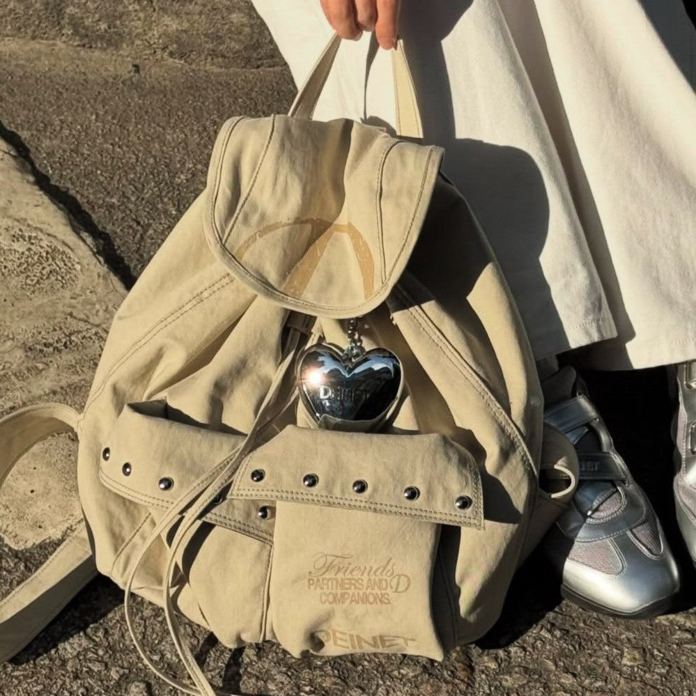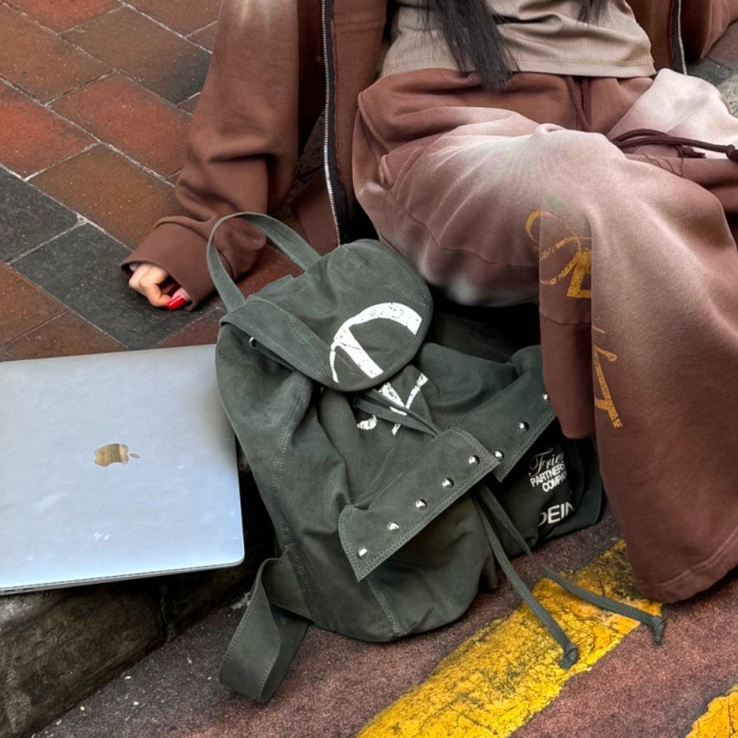 Women's Niche Letter Large Drawstring Pocket Rivet Tote Bags