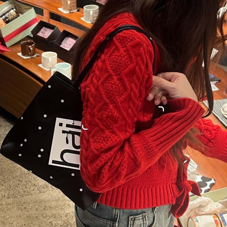 Women's Niche Retro High-grade Satin Polka Dot Tote Bags
