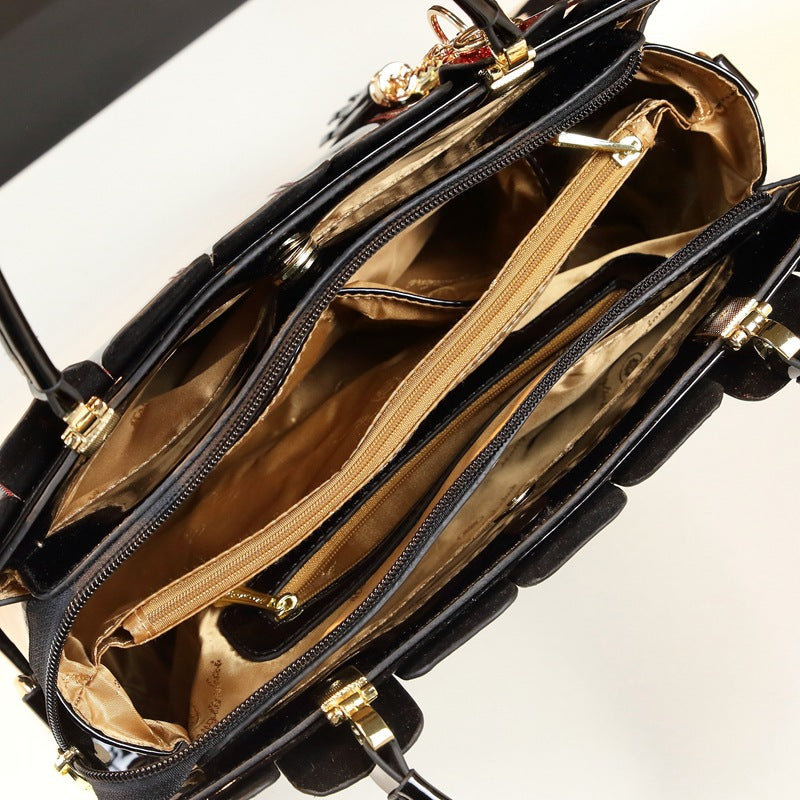 Women's Personality Stitching Mother-in-law Mother's Patent Leather Handbags
