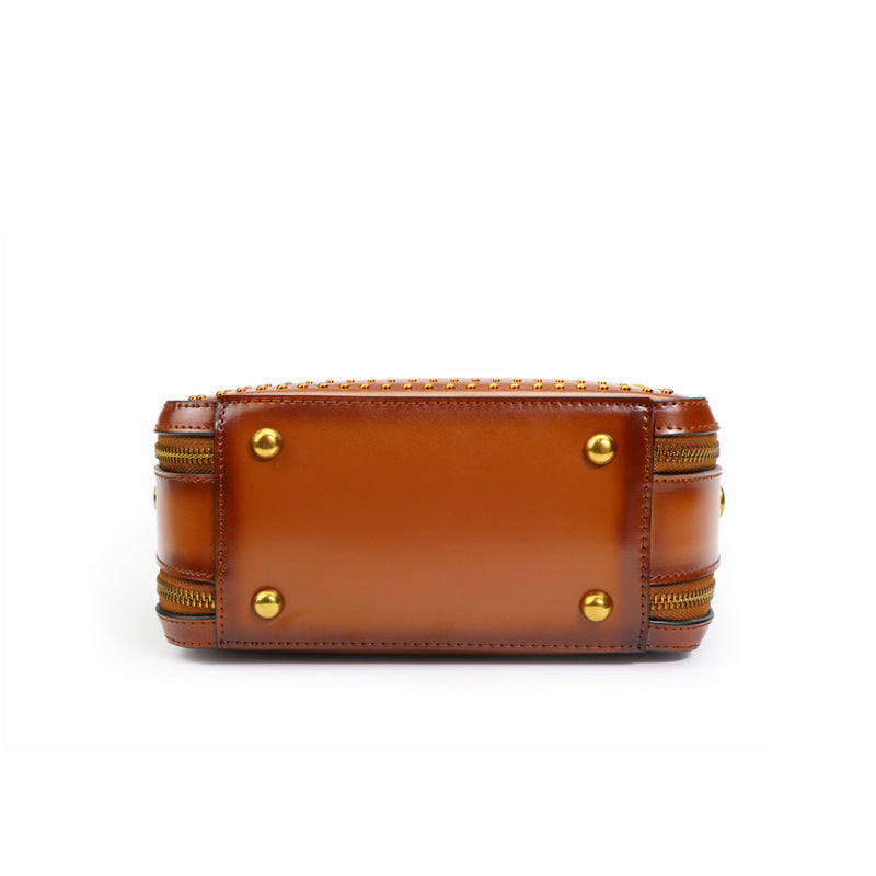 Women's Rivet Fashion Tassel Genuine Leather Portable Bags