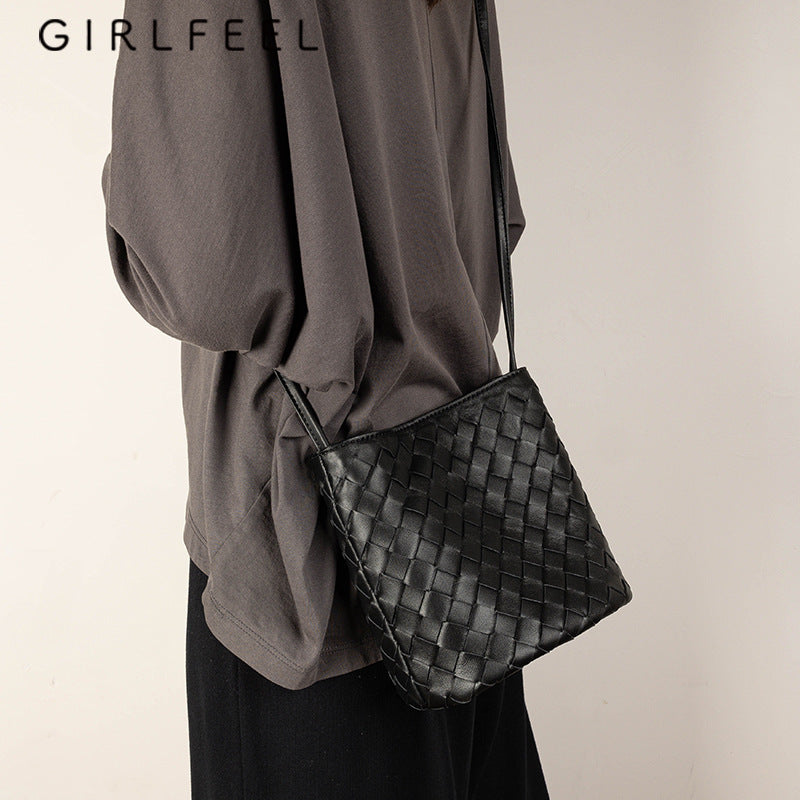 Women's Sheepskin Woven Genuine Leather Design Trendy Crossbody Bags