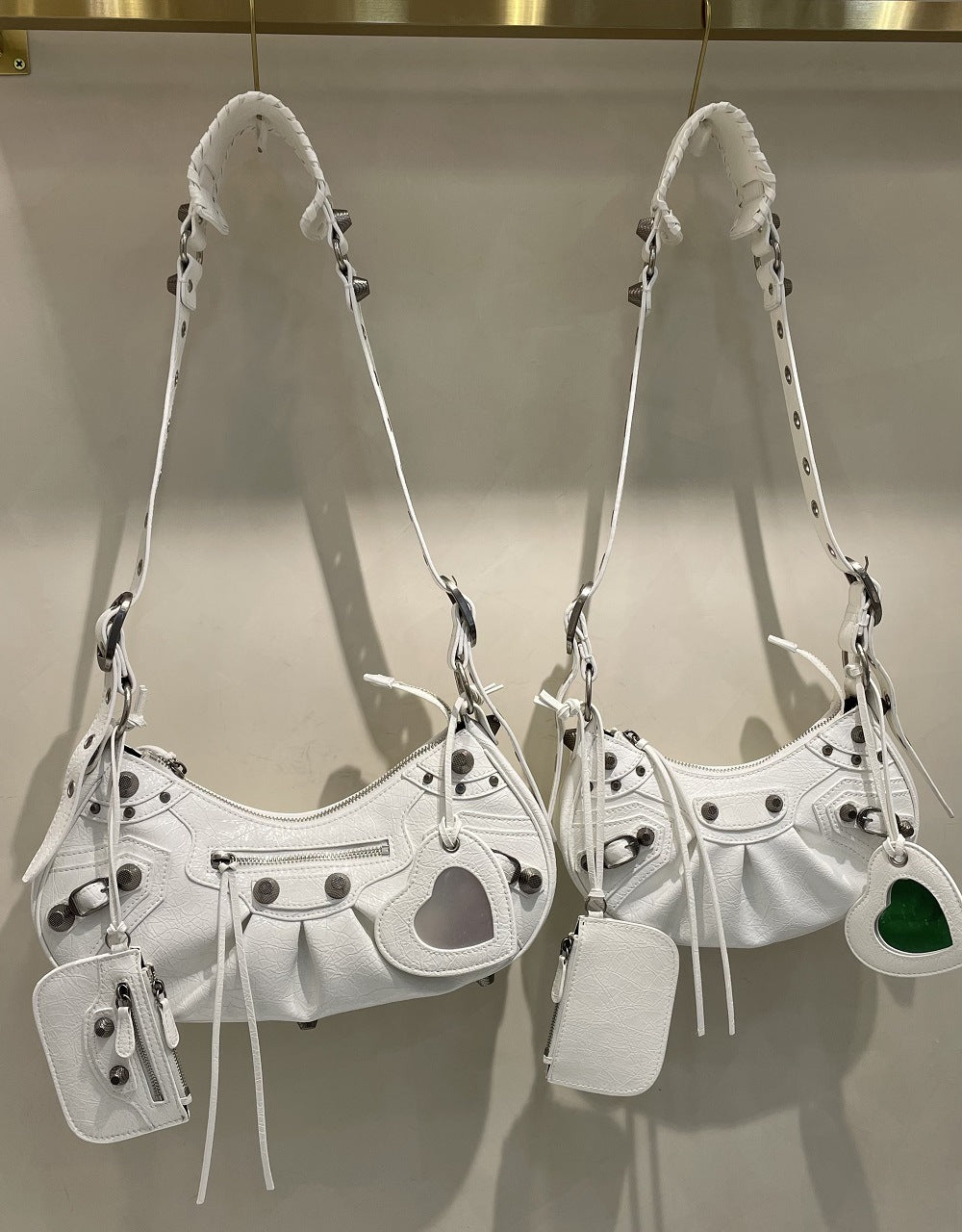 Women's Three-in-one Motorcycle High Quality Rivet Pleated Oil Wax Crossbody Bags