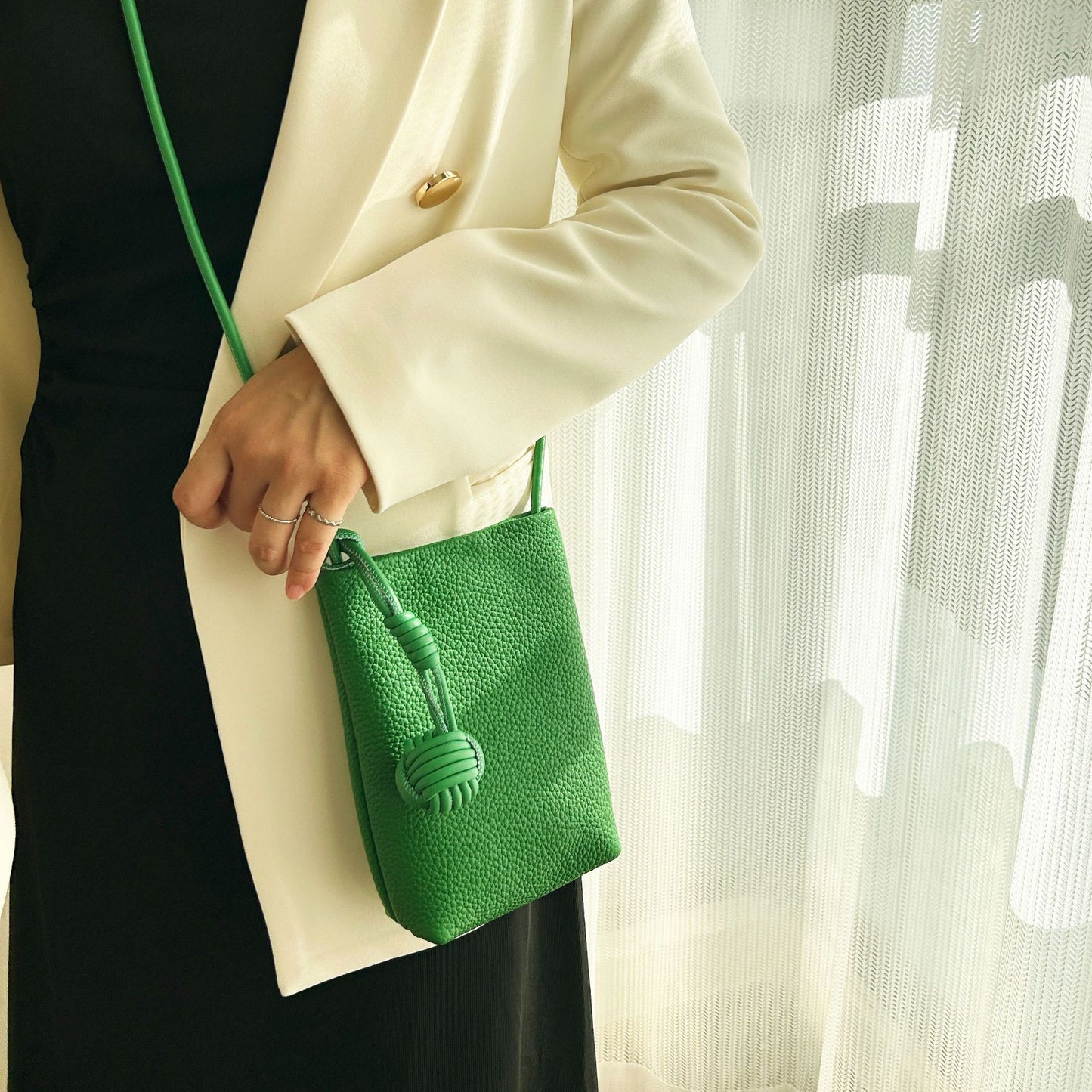 Women's Woven Ball Vertical Soft Cowhide Mini Phone Bags